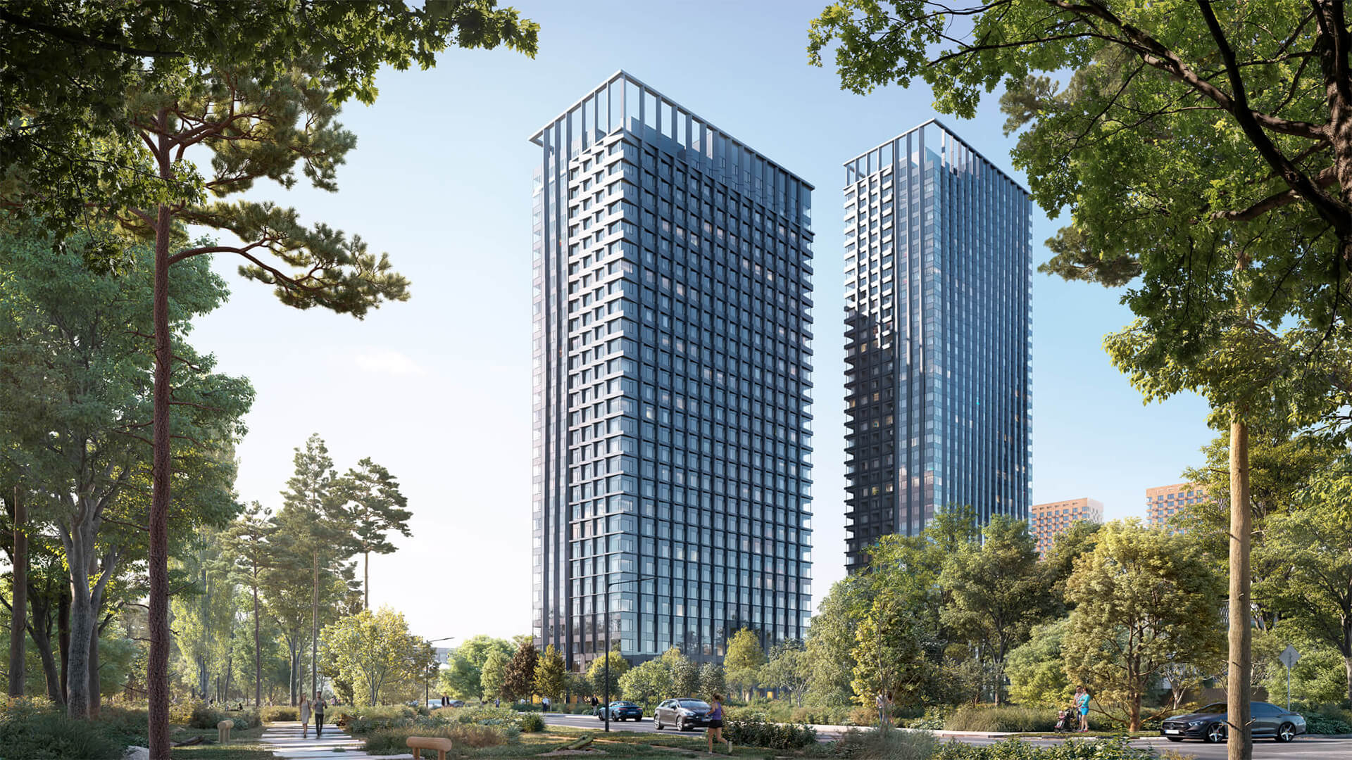 Башни расположены под разными углами к центральной оси, что обеспечивает максимальный уровень приватности и идеальную инсоляцию в каждой квартире. Архитектура «Моментс» становится продолжением природы: здания словно вырастают из зелёной среды, а высокие этажи открывают живописные виды на парк, Москву-реку и исторические кварталы северо-запада столицы.